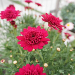 ボンザマーガレット ルビー サントリーフラワーズ 美しい… 冬の寒さで弱っていましたが、きれいなお花をつけています。