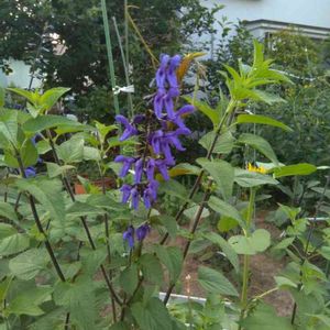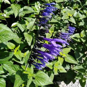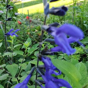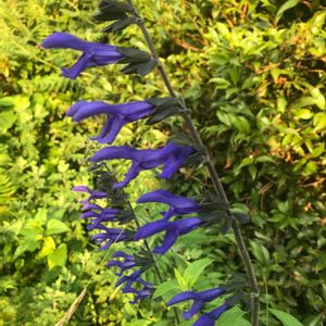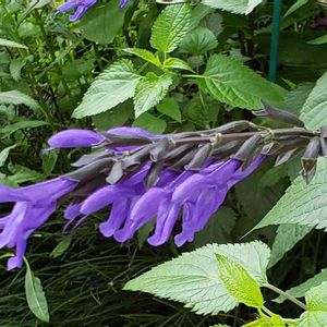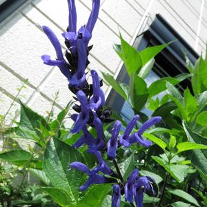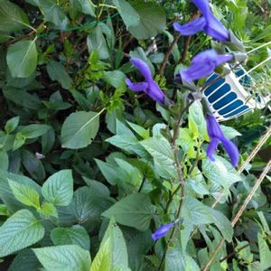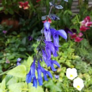 メドーセージ (サルビア ガラニチカ) 我が家の玄関前で咲いてきました💙 宿根草で、毎年株が増えて、株分けしてます‼️ セージ独特の香りがあり、しっかりした茎です 花言葉は、尊重 知恵