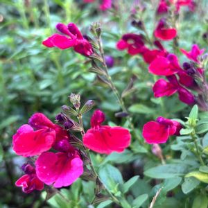 今庭のお花たち 今年初めて育てる ペチュニアアマゾネス 立ち性のペチュニアで姿勢がとても良い😊 リクニスは昨年の冬越し株 こぼれ種もかなり出ました😊 PWのクロバナロウバイ 今年初めて花が咲きました♪ 背丈はまだ70cmほど 秋になったら地植えしたいと思います😊 レスキュー苗の サルビアミラージュ お花が見れて良かった👍