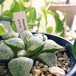 ●キジカクシ科 ツルボラン亜科 ●ハオルチア属 ●ピクタ😻😻 結構立派なピクタを戴きました。☝️🤓 ピクタ実生と札がありました。 確か紅葉すると綺麗だと聞きましたが。😁😆😁 いつもは、軟葉系のハオルチアをチョイスしてお迎えしてますが、戴き物はいつも硬葉系のハオルチアが多いです。😅 でも、素敵なので嬉しいです。