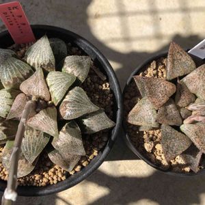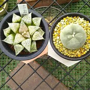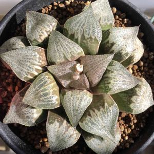 5つ目‼️😁 カクタスニシさんの、ハオルチア福袋最後の1つは、これでした~😆 白銀ピクタ実生選抜 OK白銀ピクタ✨ こっちが、本物のピクタですね🎵 ピクタ、コレクタ、スプレンデンス、コンプト?って名前を徐々に覚えてきて、未だどれも持っていなかったので、この機に、手に入れたいな~と思ってたので、念願叶いました‼️😆✨ これも、土被っちゃってるので、今度綺麗にしなくっちゃ😆✨ 肉厚でぷくぷく✨ 苗も、結構大きくて、良い感じです✨