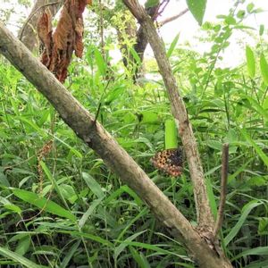 羽がツマグロヒョウモンかな? と、思ったけど、 拡大すると足や体の感じが蛾っぽい❓