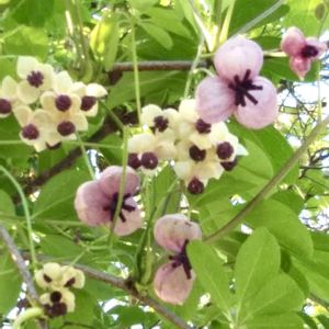2月に挿木で、貰ったアケビ。 随分葉が繁りました。 昨日、花が咲いてるものを、3本もらいました。 今度は、大きな鉢に、3本植えてみようかな?アケビの、花ってかわいいんですね、