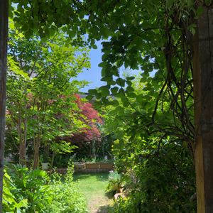 「アケビのトンネルを抜けると 夏の空が広がっていた…。」 どこにも焦点が合ってない ただ見たまんまの風景です。💦 でもアケビの蔓がすごいでしょ⁈ これで籠🧺でも編めれば すごいんでしょうね。 ザ工芸品! 写真撮る時 アケビ棚の上の方、バサバサ 音がしました。 見ると鳩が二羽🕊🕊いるでは ありませんか?巣でも作るの⁇🌿🙄 ヒヨドリやメジロを見慣れてるせいか 鳩はかなり大きい。