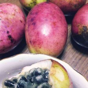 これは、何の実でしょうか? 答えは、、、。 昨年実が三個ついていましたが、食べられなかったので、今年はたくさん❤️できて、嬉しいです😊 初めての収穫で恐る恐る食してみました😉 すんごく甘くて美味しい💞やはり森のミルクやー❗️熊が好きそうな味🤩 そうです。アケビです✨ 三枚葉と五枚葉のアケビを植えて四年目で収穫出来ました💛💛💛