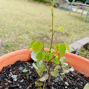 2年目アケビ 食べた後に種を植えたら少しずつ大きくなりました!春になって急にのびてきた~ 成長していく姿にパワーをもらえます(^_^) アブラムシ対策しなきゃ~💨