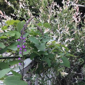 ハクロニシキを背景のリナリア💜 そして、お初のアケビが生ってる〜〜〜〜🤗やった〜❣️とても嬉しいです😆