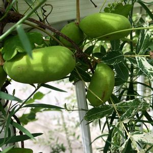 ムベ (郁子 ) アケビと 間違えていました これが 天智天皇に 献上された 霊果「 むべなるかな 」の ムベだったのですね!わかって嬉しい!です🤔🤗 コシアブラさん 名前 教えてくれて ありがとう🙇♀️😃 ムベの 鉢植え 持っているのですが 実も花も付いたことないのです😆