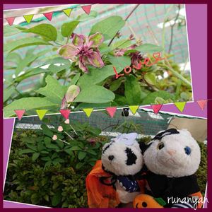 アケビの花♪ 初めて見ました(*^^*) 昨日の写真なので、ハロウィン衣装のお二人です🐱🐼 もう、11月!! あっという間だなぁ(*゜Q゜*)
