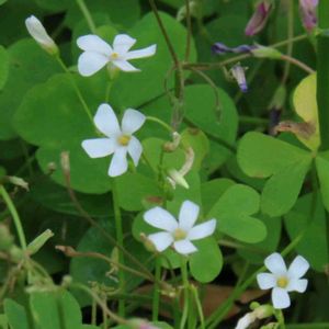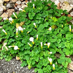 白いオキザリス 通り道のお宅の塀の外の花壇にあり、もう直ぐ開花します。 朝の散歩道