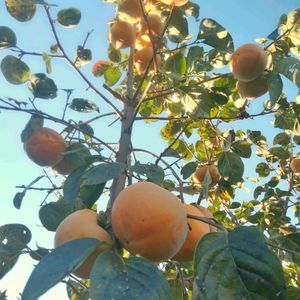 富士山麓の柿の木がたくさん実を付けています 我が家の次郎柿(甘柿)やす渋柿(百匁柿)達です