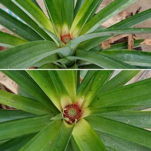 めっきり涼しくなってきましたね、と顔を合わせる人の殆どに声をかけている最近ですが… なんとパイナップルが開花しそうです(笑) 遡ること6年前にパイナップルをいただき、ヘタから栽培→3年後に収穫。 その時の子株ちゃん①がこの子です♥️ 私はアレルギーで食べられませんが、家族はとても楽しみにしてくれてます(*´ー`*)