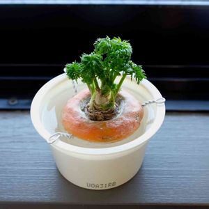 昨日のお鍋のときに出たにんじんのヘタです🥕 いつもより長めに切りました🔪✨ 葉がどのくらい伸びるか楽しみです🌱