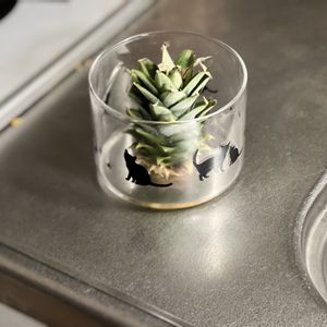 パイナップルの再生栽培に興味を持ちまして、スーパーで買ってきました🍍 葉っぱと実を持ってぐるんっとまわすとクラウンが簡単に取れるそうです。 下葉を5〜10枚取り除き、ジャム瓶に水を入れて芯が浸るように水挿しします。 根っこが出るか出ないかは、室内の明るい場所でしばらく様子見です。 ※水を入れる容器をジャムの瓶に変えました。写真差し替えがわからず、画像は古いものとなります🙇♀️