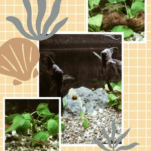 こんにちわぁ〜🤗 大きくなりました😳 エンゼルフィッシュブラック🐠右上と左下は…水槽の中の水草などに付くコケ掃除をするヤマトヌマエビちゃんも大きくなりました😅