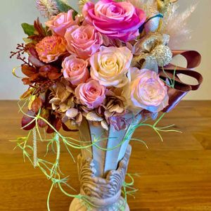 久しぶりの投稿です😊 お母様へのプレゼントにとご注文💕 エレガントな花器にピンク系で 上品なお母様を想像しながら制作😊 とても喜んで頂きました😁