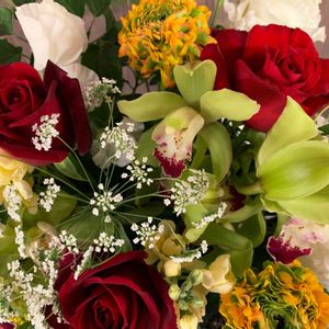 ドライフラワーのクラッチブーケ💐 赤を少しアクセントにって言う ご注文💕 とっても喜んで頂きました❤️