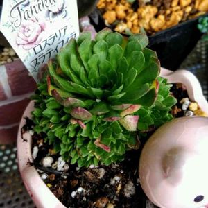 ★プラティフィラ どうも♪ 昨晩から灼熱地獄だったベランダが 涼しくて日当たりの良い好環境に🤩 てかなんなんですかねこの気温差湿度差❗️ これでもう少しだけ風が弱かったらなぁ〜 言うことないんですけど…🙄笑 本日はプラティフィラ♪ 中国やカザフスタン原産のロスラリア属です。 花がセダムに似ているので、 ほぼセダムとして流通していますが、 セダムとの違いは花弁の付き方だそうで… これが違うのでロスラリアという見かたです🤔 今現在、ロスラリアの一部は、 プロメテウムに転属になっていますが、 このプラティフィラは今のところロスラリアのまま。 紅葉具合や個体差によって、 葉の柔らかめなセンペルヴィヴムにも見えますけどね😅 ロスラリアは主に、 山脈の傾斜面などに自生していることが多いため、 高山性セダムの一種と考えられているのか、 マウンテンセダムの呼び名があります✨ ルビネなどと同様に、 根詰まり気味の肥料分の無くなった用土のほうが、 より紅葉が進むのは言うまでもありません♪ -∴-∵-∴-∵-∴-∵-∴-∵-∴-∵-∴- Rosularia platyphylla ロスラリア プラティフィラ 和名 不明(情報募集中) 別名 マウンテンセダム シノニム Sedum platyphyllum Umbilicus platyphyllus