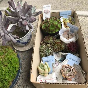 帰省先の多肉天国で多肉狩りしてきました🚙💨 先週の多肉フェスのなごりで、水色の札の子は300円でした✨ お買い得嬉しい〜💕 前から気になってたプラティフィラも💓 そしてセンペルさんにも手を出してみました😆 実家のたくましい謎多肉さんと共に🏠
