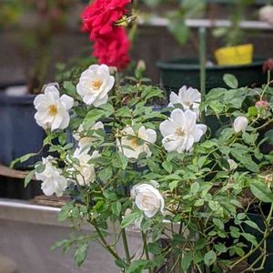 バラ アイスバーグ アーチに向く花を半額見切り品で購入。 ものすごくモリモリに増えました🎶🎶 花びらのウェーブ、アイボリーホワイトの優しい色、とてもお気に入り🤍お買い得でした👍