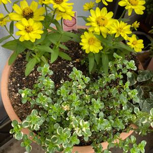 おしゃれビオラジョイ パープル可愛いなぁ〜〜〜! 合わせましたのは、 🌿ブッドレアシルバーアニバーサリー 🌿セダムトリカラー 🌿庭に生えてたタイムドレスホワイト タイム掘り起こしたので、どうかな🤔枯れませんように。 玄関周りが華やかになって嬉しい😊