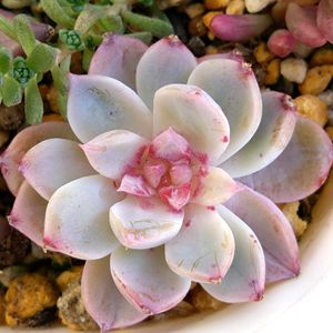 スーパーエレガンス 2体個別にしてますが鉢からはみ出て水やりしにくい スカートみたくなってて、トップはうっすらピンク🌿