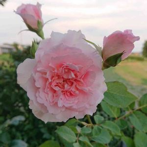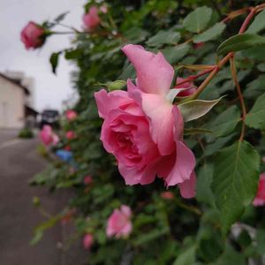 ヘレンとアンジェラ 2022.5.1 この日もくもり空でした。南側のフェンスを見ると、手前にヘレン、奥にアンジェラが咲いています。 どちらのバラも今年はたくさん咲いてくれてうれしい❢ ピンク色の洋服はあまり持っていませんが、バラはピンク色が好きです。