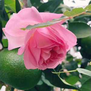 ふわふわな雰囲気のHelen💕 ピンク色が麗しいです✨ 背後の🍊も大きくなってきました☺️ 秋の雰囲気大好きだなぁ♬