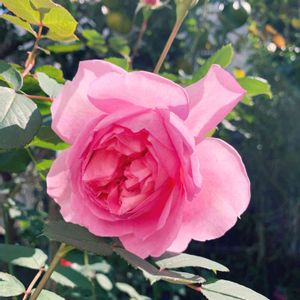 バラのヘレンも咲いた 2022.4.21 数日前から、蕾がほころんでいましたが、今朝、咲いていました。わ〜❢ピンク色が可愛い。うれしいわー。 今日は午後から雨の予報が出ていたね。庭掃除が終わったら、花を切って、家の中で楽しみたいと思います。