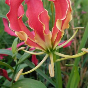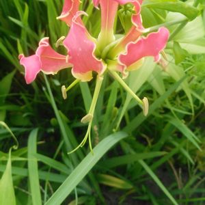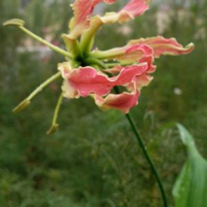 グロリオーサ 長年植えっぱなしで球根が増え 今年は茎が5本も立ち上がりました 花数も多く嬉しい限りです