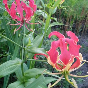 こんばんは 今日は暑いものの薄曇りで少しは 息がつける様な日でした。 グロリオーサの赤色が元気な夏を感じ させてくれました。😊