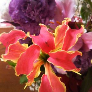 今日のお花 グロリオーサ 買い出しに行ったら売ってた🤭 思わずあっ今日のお花だ🎵 と💕