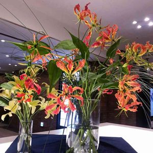 今日のお花『グロリオーサ』 少ない本数で生けると 色んな方向を向いて踊ってしまうお花(❁*ᵕᴗᵕ )ウンウン こんなにたくさんだとゴージャスに見えますね( ¯﹀¯ )♪