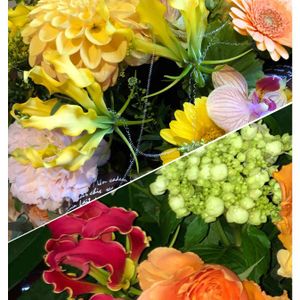 グロリオーサ♡ 今日のお花🌼 毎年、主人の誕生日に届く お祝いアレンジの中には 黄色や赤のグロリオーサが 添えられています😊