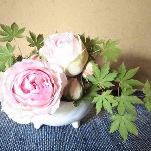 おはようございます😊✨。 母の庭の薔薇を もみじを添えて 生けました(^-^)。 短く生けたので、 下の方の枝を 挿し木にしてみます(^-^)✨。 上手く根が出ますように✨✨✨✨。 今日も素敵な1日を お過ごし下さいね~🍀😊✨。