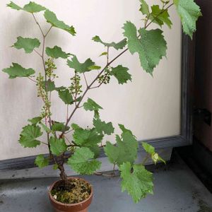 実物盆栽に仕立て中のヤマブドウに実が付いてきました。北海道は寒いため、越冬出来る果樹は限られます。ブドウの房に付いた実が大きくなる様が見れるのは、新鮮で興味深いです。紅葉と熟した果実を秋に鑑賞するのが今から楽しみです。