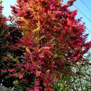 燃え上がるように開花した常磐万作。 隣はロウバイで、先月までは黄一色でした。 どちらも電線まで届く大木です! いつの日か、気象条件が合えば、同時に咲き誇ることもあるのかなぁ? なんて思いながら、お寺の裏庭を眺めます。