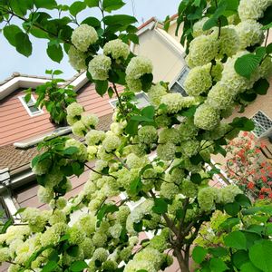 今年の大手毬は、ポンポンの数がスゴイ! 去年剪定もしなかったので、暴れ放題です😅 満開は連休直前位かな?