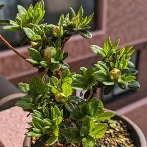 ツボミがブリッブリに膨らみ開花まで あと少しのミヤマキリシマツツジ。 絞りの花が咲くツツジですが、 白花の割合も多く、絞り咲き品種として まだ評価は出来ません。 期待値が高いため、ドキドキしています。