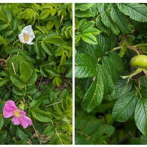 今日の花『ハマナシ』 ハマナスとも呼ばれますね。 北海道だと街路樹で植栽されたり しているため、よく見かけます。 花後は実がついて赤く熟します。 赤い実が目立つと、夏も終りです。 北海道における夏を伝える樹木です。