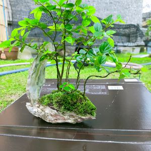根伏せをした苗を使い、 石付きに仕立てました。 いまひとつな仕上がり💦 石の模様と苗の模様を 合わせるのが難しいですね。 根伏せの苗の根っこも 培養期間が短いために パヤパヤしか生えていませんでした💦 無理が出来ない。 まずは枯らさないように 培養していきたいと思います。