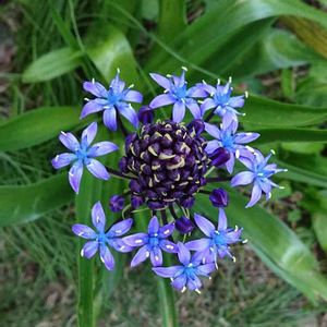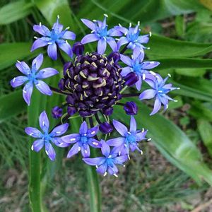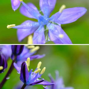 今日の日中の撮影です。 雨が止みかけたタイミングで撮っています。 シラー・ペルビアナが雨を溜めています。