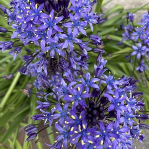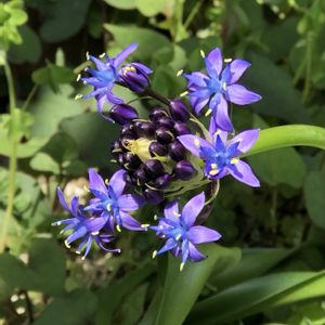 こんばんは🌜 ゴールデンウィーク皆さんどの様にお過ごしですか? 私は、今日は仕事でした😅 「オオツルボ🥰」別名シラ・ペルビアナ この花をGSで知った時、実物を見てみたいとおもっていたら、お隣さんから3株分けて頂きました😀 開花間近に分けて頂いたので、2年待ちましたが、3年目の今年沢山の花が咲きました👍👍👍 ブルー💙の色の中に小さな黄色💛の花があるのがとっても素敵ですよね🤗