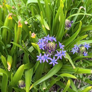 快晴の東京 仕事先の庭の片隅に、ただ1輪咲くこの子は誰なんでしょう? PS:あんころもちさんから回答いただきました❗️ シラー・ペルビアナ!!地中海産!!
