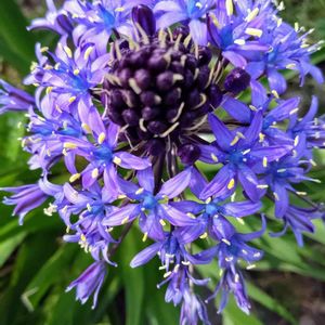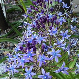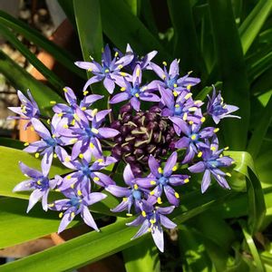 オオツルボ(大蔓穂)(シラー.ベルビアナ) 初めて見ましたが星形のお花がとっても魅力的でした🌠💜✨ 花径2センチ位でしたが、葉っぱがすごく広がっていました
