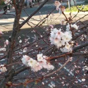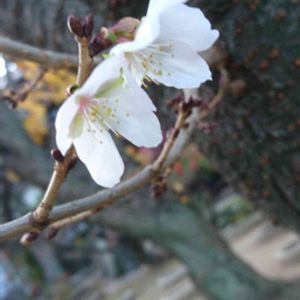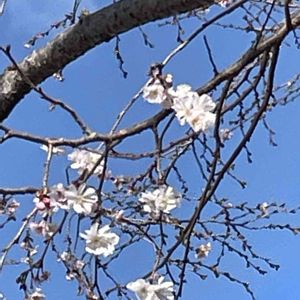 向かいの公園で、桜の花が咲いていました🌸 なに桜でしょうね? 花びらはひと重なので、フユザクラ?シキザクラ?