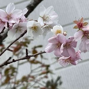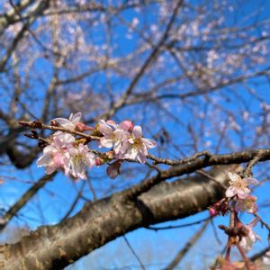 1月4日、神奈川県鎌倉市の大船フラワーセンターで撮影。 三波川の冬桜です🌸 冬と春の2回開花する珍しい桜です。 群馬県鬼石(おにし)町の三波川の冬桜は、国の天然記念物にされています。