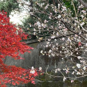 お寺さんの境内にポツリポツリ咲くフユザクラ🌸