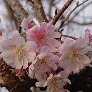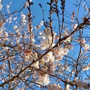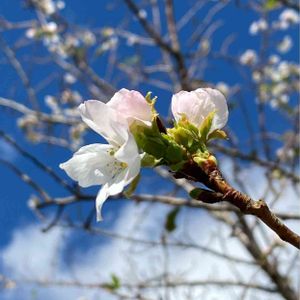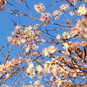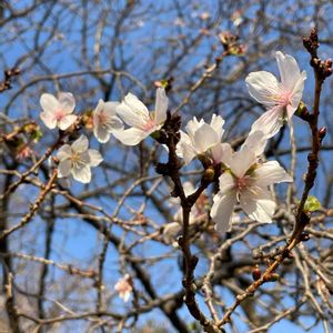 今日のお花*フユザクラ🌸 昨秋、京都で出会ったフユザクラ… 澄んだ青空にマッチして綺麗デシタ♡(*´꒳`*) 「冬桜」 バラ科 別名・コバザクラ フユザクラは、オオシマザクラ(大島桜)とマメザクラ(豆桜)の種間雑種 葉が小さいのでコバザクラ(小葉桜)とも呼ばれる。 花は一重で咲き始めは淡紅色、徐々に白色になり秋~春まで長く咲き、萼筒が紅色で太い。