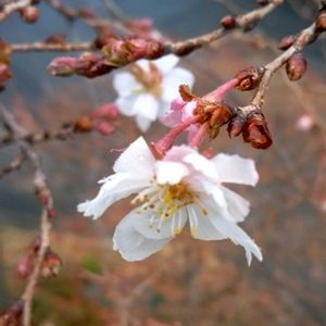 今日のお花 フユザクラ(冬桜) *バラ科サクラ属 冬に咲くサクラの総称で山桜と豆桜が交配(諸説あり)して生まれた落葉高木! 花期は11〜12月.4月 年に2度花が咲きますが秋の花には実は付かないそうです! 花は一重で薄ピンクから白色に変化し、花柄が短く寒さで枝に張り付きます! (仙台市三神峯公園) ③ジュウガツザクラ! 広義では冬桜に含まれます! 花弁が細く半八重が多い! (福島県 伊達市)